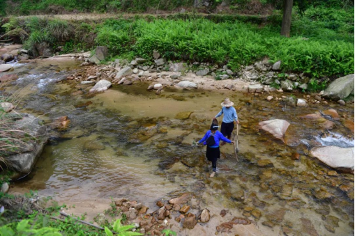 梁英迷和老伴梁安合在去劳作的路上(2019年5月24日摄)