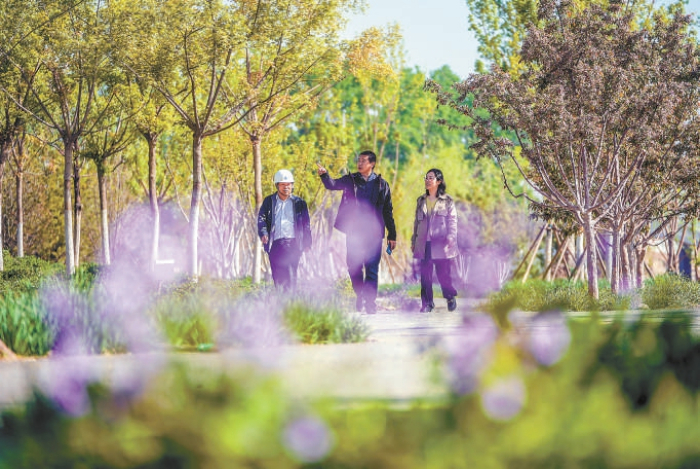 记者看到,丛生五角枫、华山松、七叶树、红栌、龙桑白蜡、元宝枫等近7500株新植乔木生机勃发,为公园平添绿意。园林工人们正在现场忙着浇水、平整土地。公园项目由北京市南郊和义农场有限公司负责建设,该公司执行董事周卫平介绍,除乔木外,公园还新植超3.4万株灌木,超13万平方米花卉地被。未来还将种植7.8万平方米水生植物。