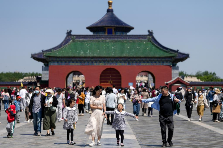 4月29日,游客在北京天坛公园参观游览。新华社记者鞠焕宗 摄