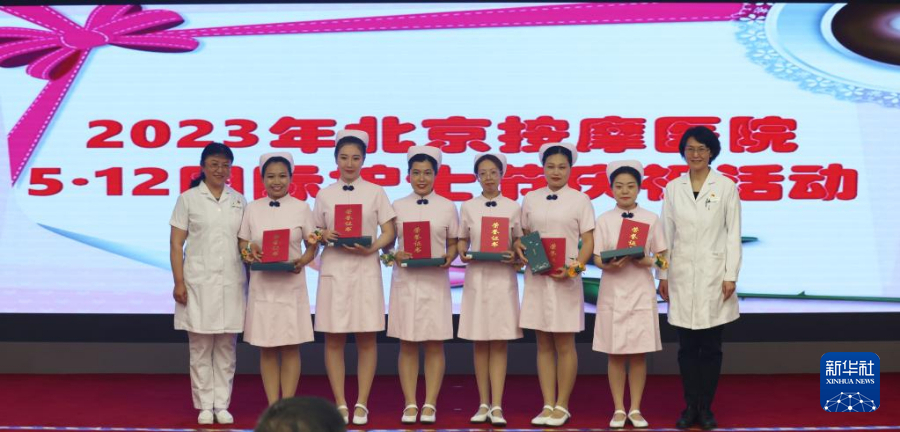 当日,在国际护士节来临之际,北京按摩医院举行庆祝活动,通过护理技术操作秀、表彰先进、文艺演出等形式,表达对一线护理人员的致敬与问候。