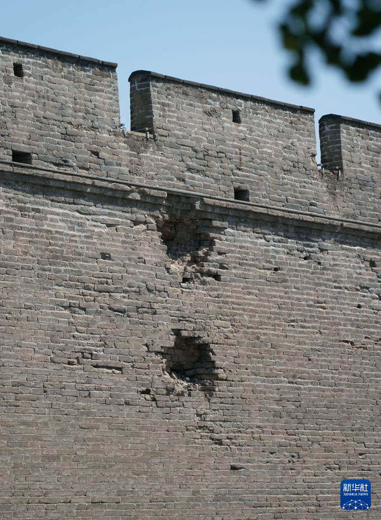 这是7月6日拍摄的宛平城城墙上的“七七事变”弹坑遗址。