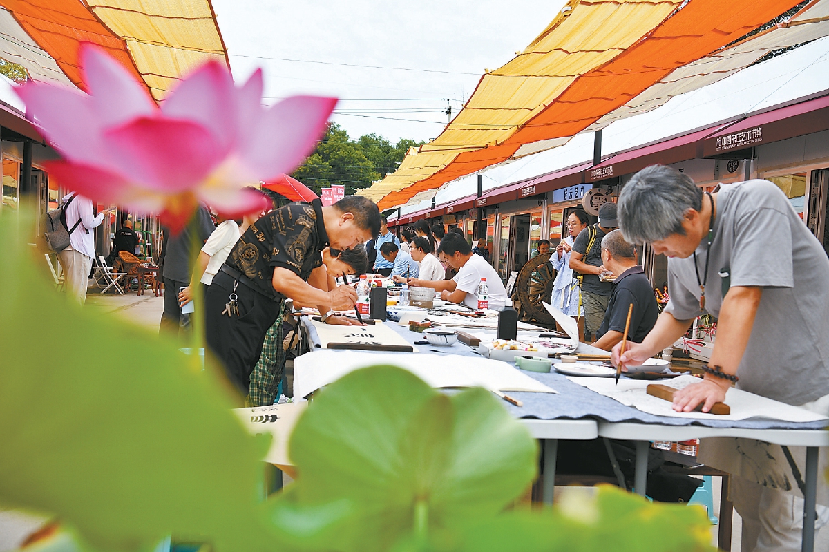 在艺术市集开业之际,8月26日至28日每晚19时到21时,现场将连续三天举办文艺演出及百名艺术家现场创作活动。“夜幕华彩,艺声绽放”主题音乐节将在中国宋庄艺术市集音乐广场开唱。此次音乐节共分为三个主题,分别为“经典之夜”“跨界交响”“世界之声”,通过三天的音乐盛宴,让观众领略各种音乐风格的魅力。(记者 孙颖 王广燕/文 记者 白继开/摄)