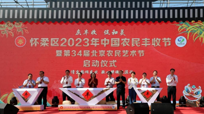 新华网北京9月23日电(田晨旭、范晓琦、邢静)农业交流分享汇、农产品展销市集、农耕农事互动体验,“村晚”群众文化演出……9月23日,为期三天的北京市怀柔区2023年中国农民丰收节暨第34届北京农民艺术节在北房镇开幕,19项农文旅融合系列特色活动异彩纷呈,绘就一幅乡村振兴的幸福画卷。
