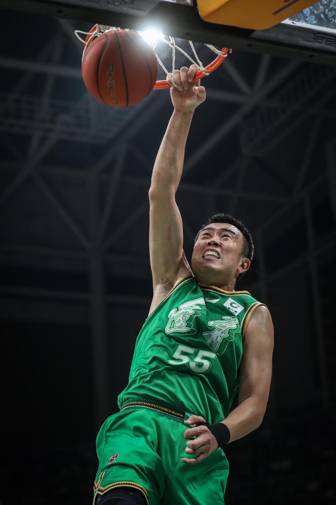 11月15日,辽宁队球员韩德君在比赛中扣篮。新华社记者 潘昱龙 摄