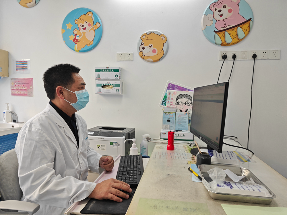 长春市儿童医院中西医结合科主任薛斌在舒兰市人民医院儿科疗区查房。受访对象供图