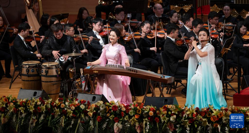 12月22日,在北京中山音乐堂举办的“中国梦·劳动美”2024新年交响音乐会上,演员演奏民乐与管弦乐《大地之春》。