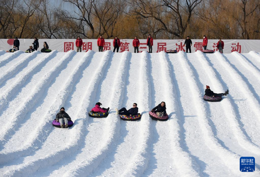 当日,圆明园第三届欢乐冰雪季开启。此次圆明园欢乐冰雪季活动期间将开设冰场和雪场,其中冰场设置在圆明园福海、凤麟洲区域,游客在此可以进行冰车、滑冰、冰球等各种冰上游玩项目以及欣赏冰嬉表演;面积达2万平方米的雪场设置在圆明园松风萝月湖,内有36条雪圈滑道供游客游玩。此外,雪场还设有蹴鞠、投壶、雪地龙舟船、儿童无动力玩具等免费项目供游客游玩。冰场和雪场均从12月29日起开始营业。