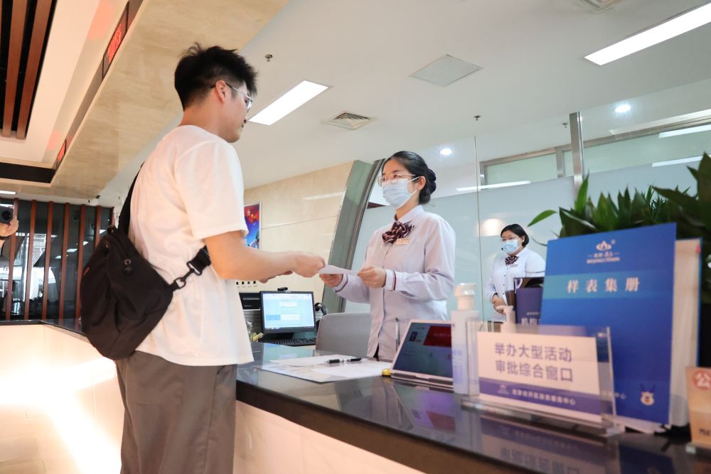 北京爱度次元文化传播有限公司的工作人员潘一欣在北京经开区政务服务中心“举办大型活动审批综合窗口”领取办事结果。(受访单位供图)