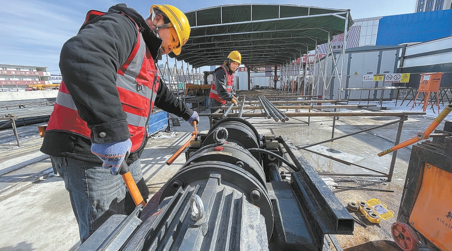 永顺站是平谷线西起的第8座车站。记者昨天上午在永顺站看到,尽管雪后气温较低,施工现场却一派火热,工人们正在清点绑扎钢筋,塔吊持续运送物资。