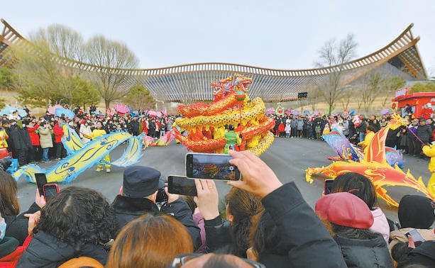 昨天,延庆区举办“福满京城 春贺神州”2024年元宵节花会游园活动。舞龙、舞狮、旱船、高跷等24档延庆优秀花会表演队伍走进世园公园,为市民游客奉上一场精彩的“文化盛宴”。记者 潘之望摄
