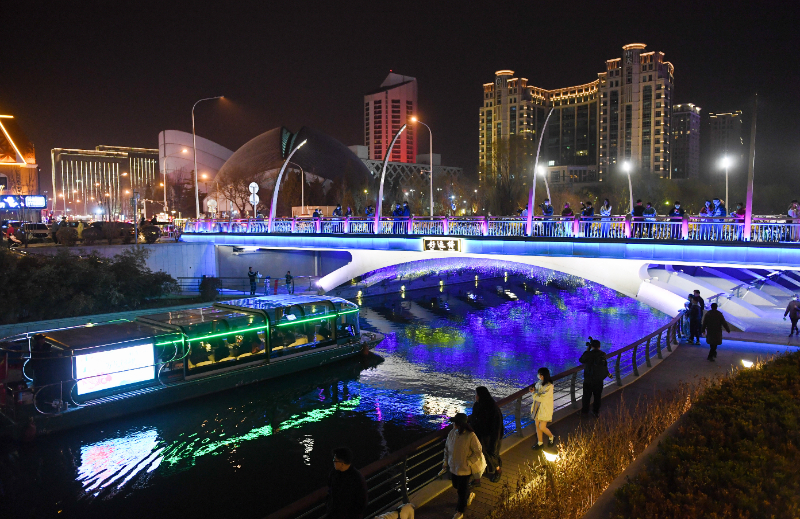 3月16日晚,2024年北京亮马河醒春启航活动举行。近年来,北京市朝阳区推动城市更新,打造亮马河国际风情水岸,成为北京旅游消费的新亮点。新华社记者 鞠焕宗 摄