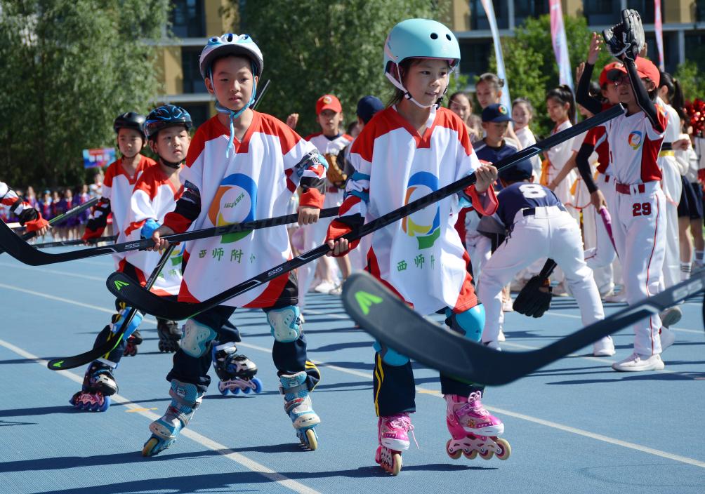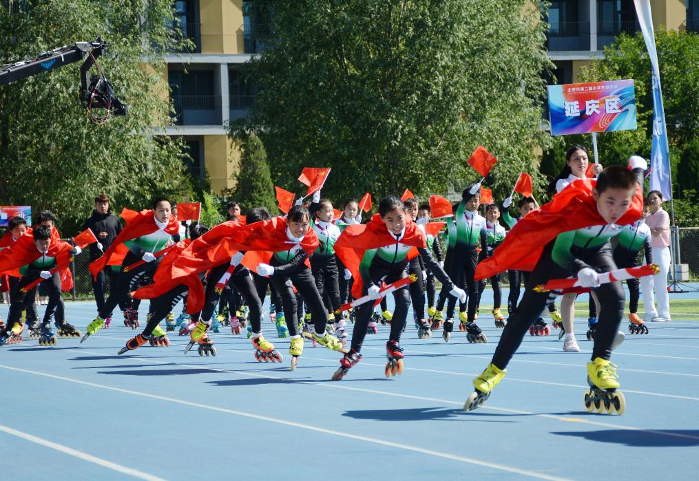 据介绍,本届运动会丰富了北京小学生运动会的赛事内容,在举办比赛项目的同时,设计了超级障碍跳绳赛、少儿斯巴达挑战赛、旱地龙舟赛、超级打地鼠、撒欢儿泡泡秀等趣味体育活动,鼓励孩子们战胜困难,挑战自我,拥抱健康。