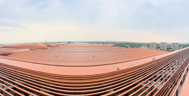 图为6月28日,北京新国展二期西区金属屋面竣工验收。(袁乐晨摄,新华社发)