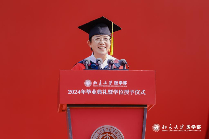 毕业典礼上,北京大学常务副校长、医学部主任、中国工程院院士乔杰为同学们讲授“最后一课”。她勉励毕业生们,永不懈怠、敢于突破,以厚道之心立德,以专精之技立世,以出新之势立志。