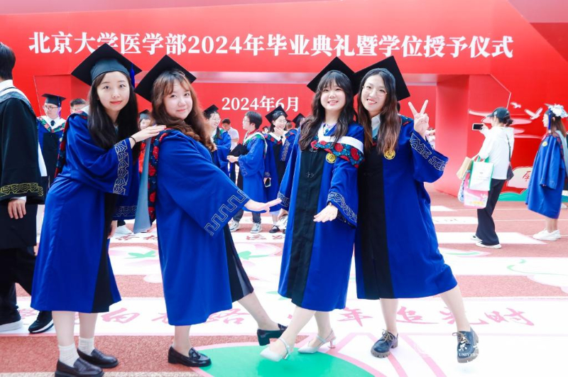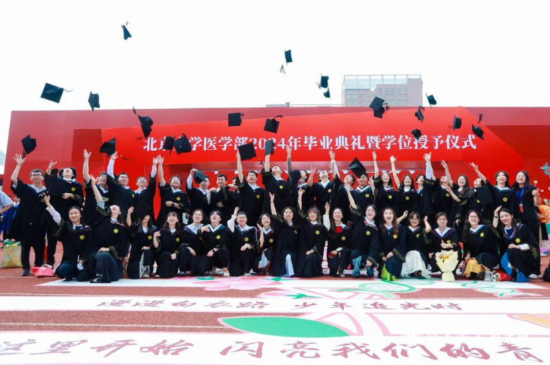图为毕业生们在毕业礼上合影(北大医学部供图)