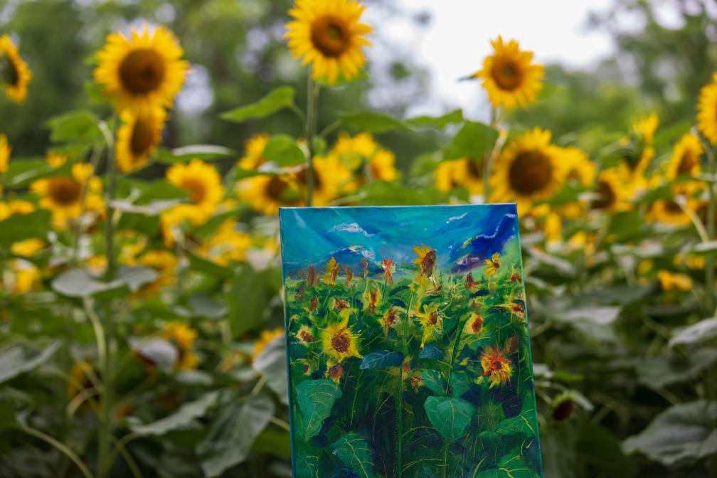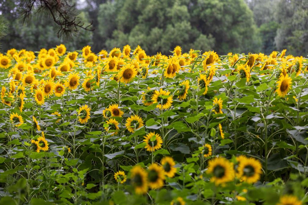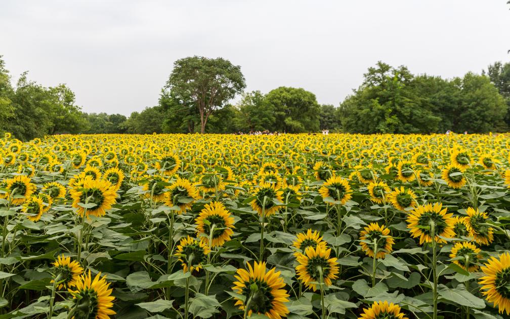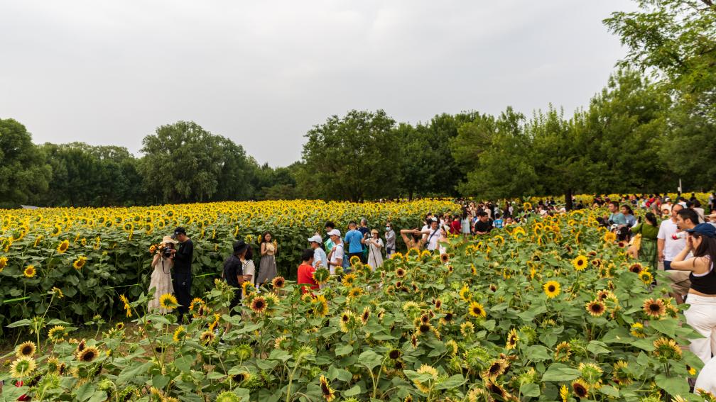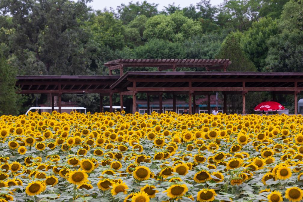 以上图片:2024年7月7日在北京奥林匹克森林公园北园拍摄的向日葵花海。CICPHOTO/张如训 摄