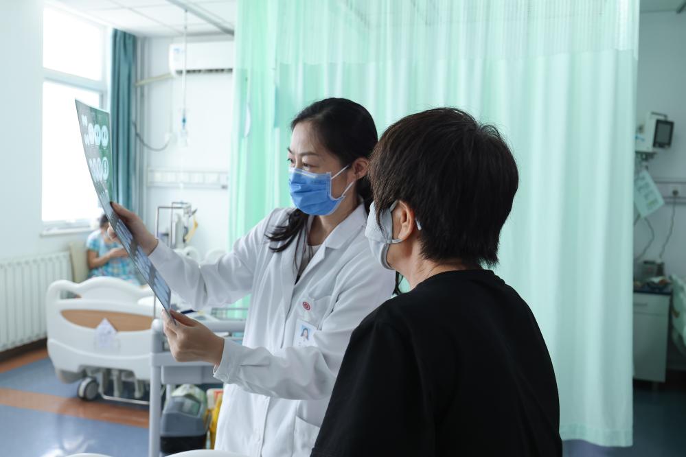 图为北京大学第一医院感染疾病科主任王艳正在查看患者的影像报告。新华社发