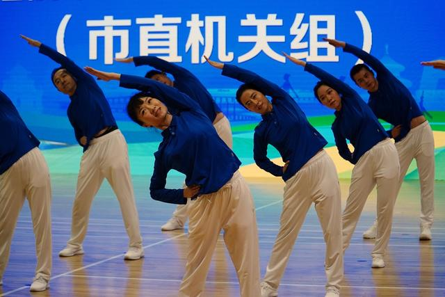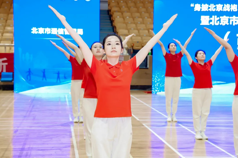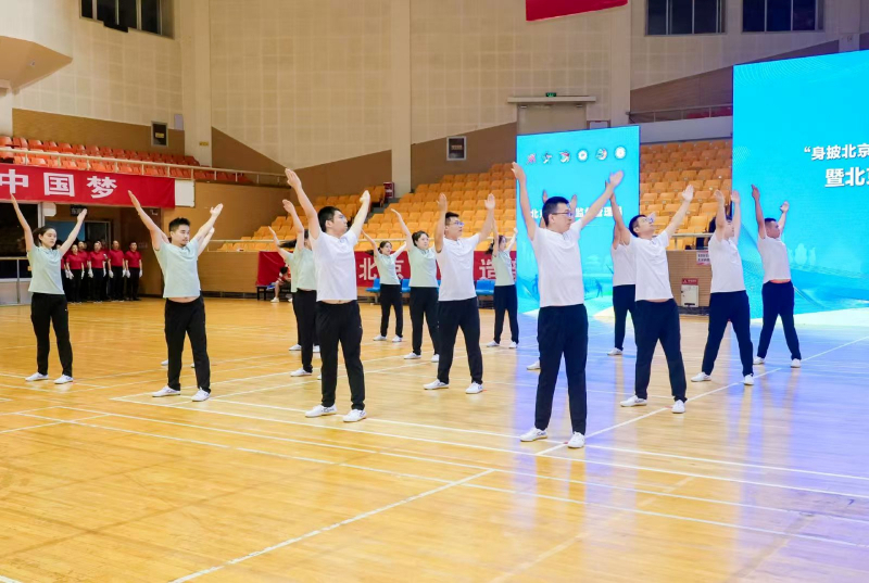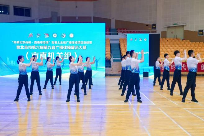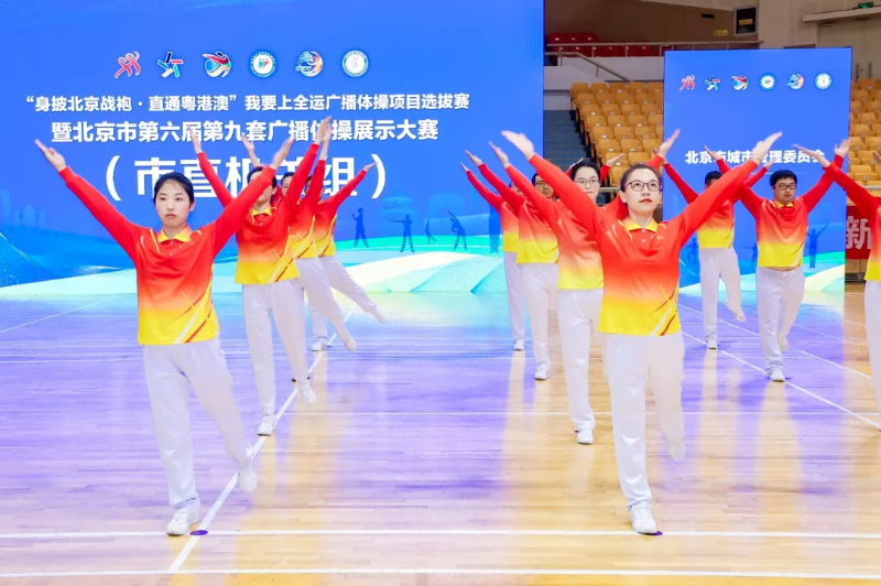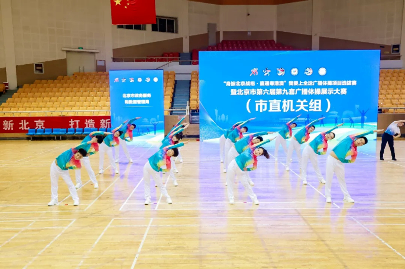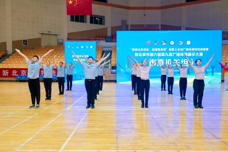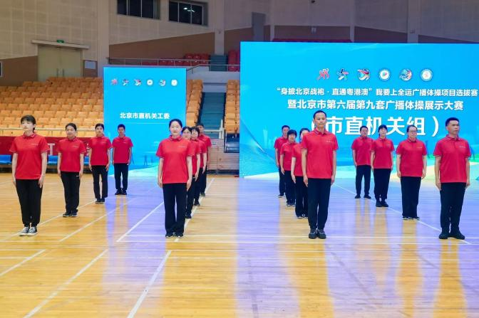 8月9日,“身披北京战袍•直通粤港澳”我要上全运广播体操项目选拔赛暨北京市第六届第九套广播体操展示大赛在地坛体育馆举行。市直机关工委、市城市管理委、市退役军人事务局、市市场监管局、市国动办、市政务和数据局、市知识产权局、市重大项目办、市通信管理局、市文化执法总队等10个单位代表市直机关参加比赛,展现开展全民健身运动风采。