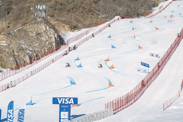 2024年12月7日,在延庆奥林匹克园区,国际雪联高山滑雪单板平行大回转世界杯延庆站比赛举办。李晓鹏摄 资料片