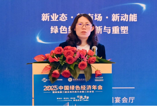 国际绿色经济协会执行会长邓继海作绿协发展报告。邓继海从四个方面报告了绿协2025年工作重点计划。他提出“绿色经济新业态新市场5大专项行动”,即零碳园区方案综合体行动、沙戈荒生态治理与绿色能源产业行动、AI数字技术融合绿色低碳产业行动、国际“绿色贸易”行动、ESG行动。同时提出以全力服务北京市建设国际绿色经济标杆城市为轴心,联动推进京津冀蒙、上海、江苏及长江经济带、川渝经济带等区域绿色低碳服务与合作,持续深化国际交流合作。