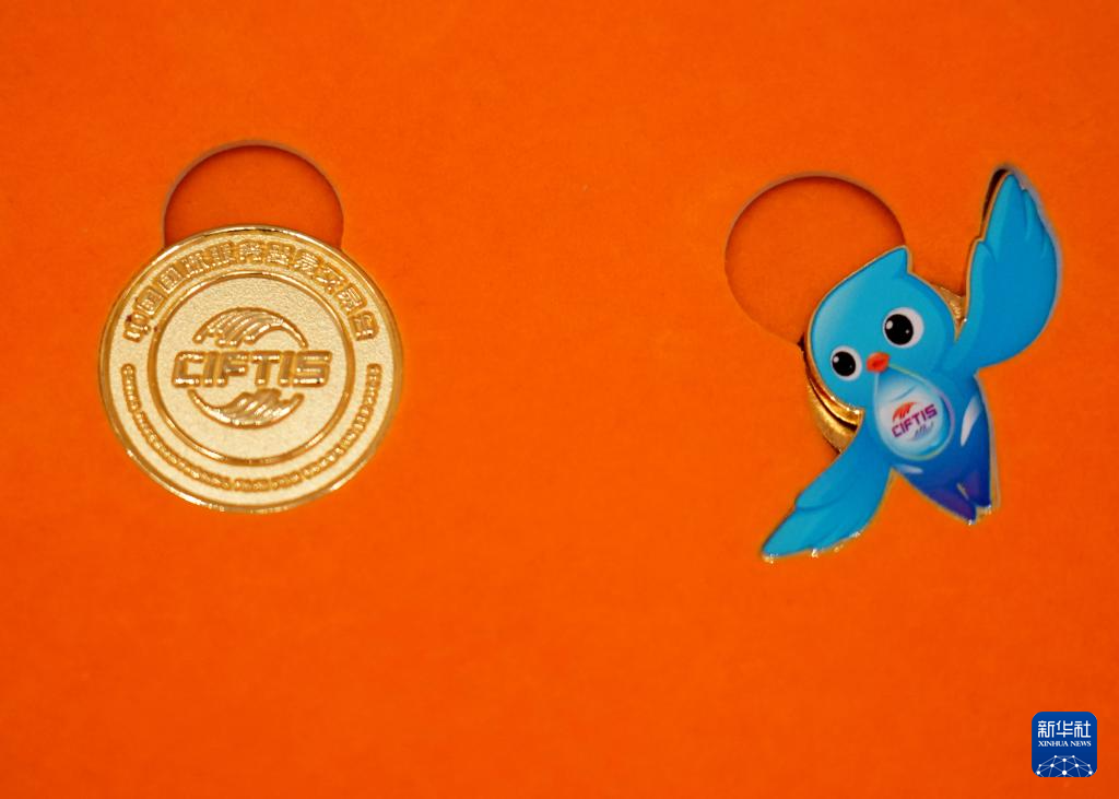 这是8月11日在2025年服贸会媒体吹风会现场拍摄的服贸会特许商品。