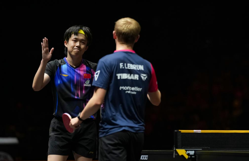 与半决赛相比,男单决赛则呈现“一边倒”。面对勒布伦,王楚钦首局开始便连得三分,将比赛掌控在自己的节奏中,并以11:7先下一城。第二、三局,王楚钦继续压制对手,打出较为悬殊的11:2、11:5。第四局勒布伦奋力反击,但难以招架王楚钦的攻势,最终王楚钦11:7再胜一局,横扫对手夺冠,他也成为本届赛事男单、男双、混双“三冠王”。