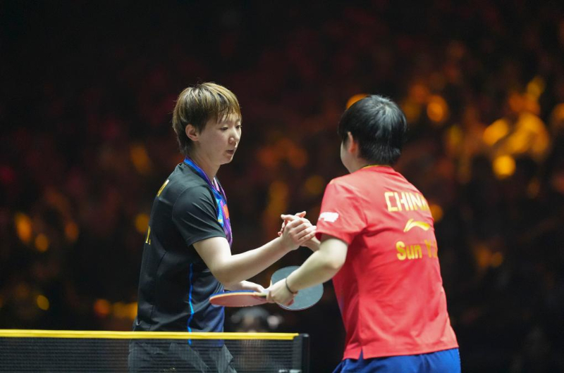 “跟‘莎莎’打过很多女单决赛了,自己输的(次数)多,包括近几场决赛也都输掉了,所以再次来到决赛我觉得自己心态放得比较好,去拼她,去挑战她。”王曼昱赛后说,“每次跟‘莎莎’交手都有很多收获,能学习到很多,接下来要好好总结。”