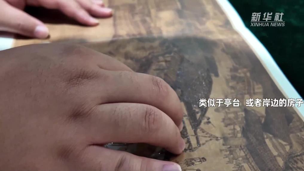 10月13日,视障人士在发布会后,欣赏无障碍版《触摸<清明上河图>》。