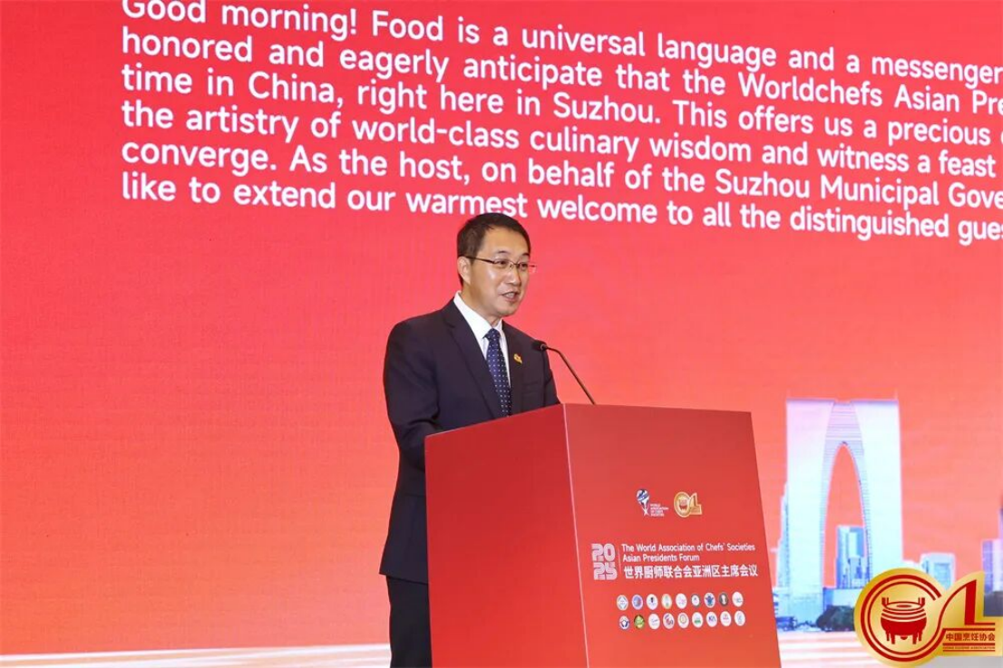 苏州市委副书记、市长吴庆文、中国烹饪协会会长杨柳、世界厨师联合会亚洲区主席梁世安出席会议并致辞。