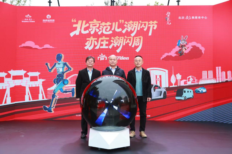 北京亦庄工委管委会宣传文化部部长陈建民(左)启动“北京范儿”潮闪节·亦庄潮闪周暨尚·Garden主题嘉年华。新华网发