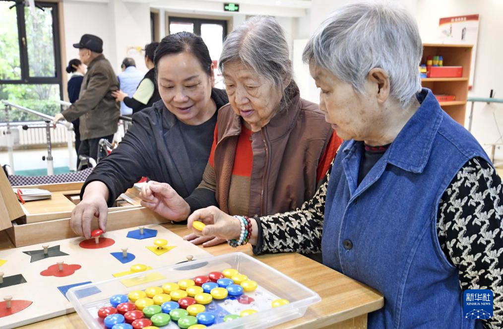 10月17日,老人们在北京市朝阳区来广营区域养老服务中心福寿苑养老公寓内玩智力游戏。