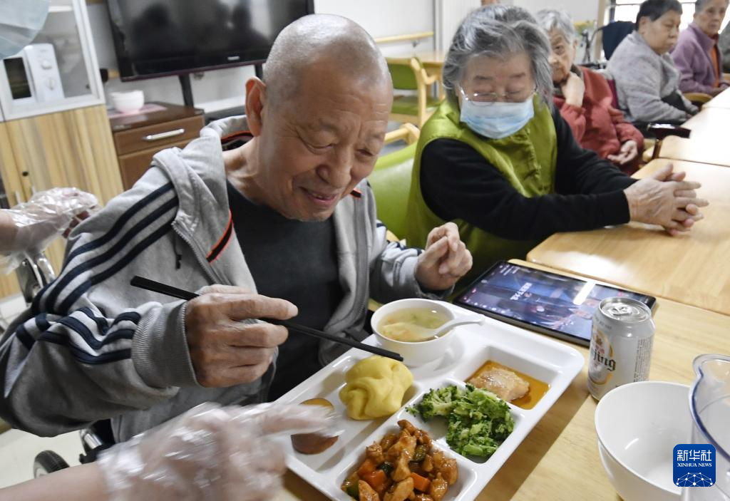 10月17日,老人们在北京市朝阳区来广营区域养老服务中心福寿苑养老公寓内吃午饭。