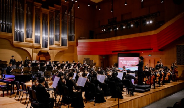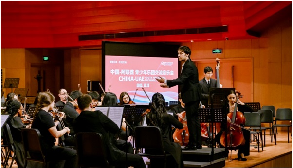 新华网北京10月20日电(记者庞元元)10月18日晚,婉转悠扬的旋律在北京金帆音乐厅内回响,百余名来自中国和阿联酋的青少年乐手在中国指挥刘心悦带领下,共同奏响具有浓郁民族特色的《瑶族舞曲》。当晚,“中国-阿联酋青少年乐团交流音乐会”在此上演,两支乐团还分别演奏了多首经典交响乐作品。