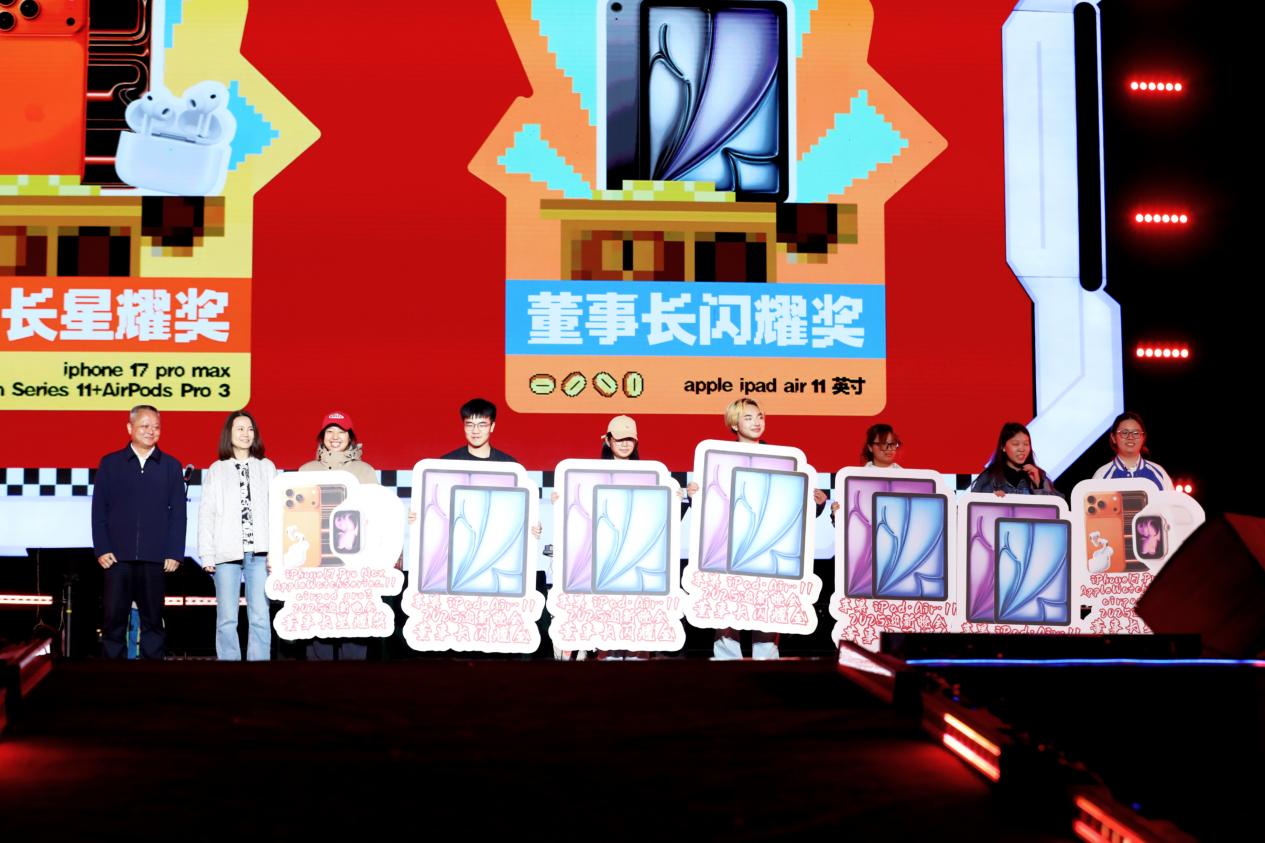 合川区区委副书记、区长陈桥,集团联席董事长陈晓莉现场抽取5名学生获得董事长闪耀奖(董事长特别奖)、2名学生获得董事长星耀奖(董事长特别大奖)。