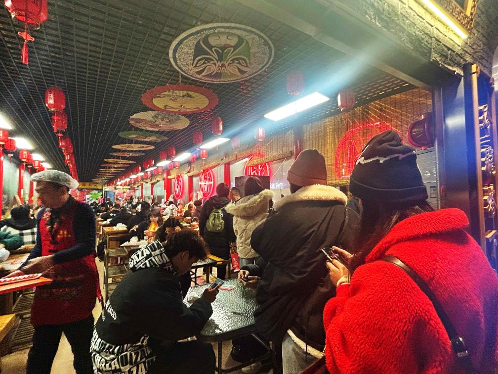 在新辰里(亚运村店),麻辣烫、烧烤、串串香、奶茶店的档口前围满了年轻人。来自上海的李先生说:“从餐厅到美食档口,到处都是从赛场出来的观众,大家有很多共同语言,这种氛围特别好。”