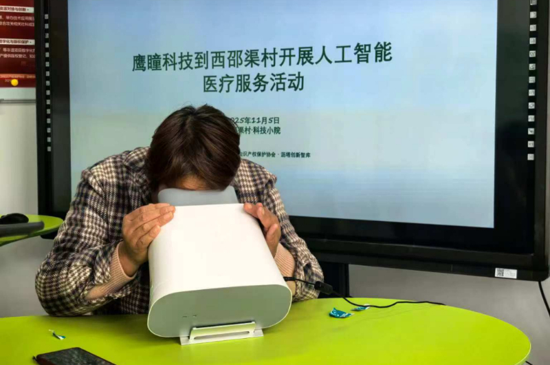 新华网北京11月13日电(记者夏子麟)“请双手扶住设备,等待拍摄眼底照片。”几秒钟后,检测完成,一份由人工智能生成的健康报告便发送到了村民手机上。近日,在北京市密云区东邵渠镇西邵渠村的“乡村人工智能实验室”里,一场由鹰瞳科技带来的人工智能健康评估公益活动,让村民在家门口享受到前沿医疗科技的便捷服务。