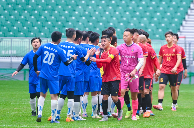 决赛在朝阳区总工会代表队与西城区总工会代表队之间展开。置身于承载着深厚足球文化的北京工人体育场,双方球员为现场及线上观众呈献了一场扣人心弦的对抗。上半场,西城区总工会代表队战术奏效,连入两球,占据先机。然而,下半场朝阳区总工会代表队通过换人调整,特别是10号球员宫羽上演“帽子戏法”的惊艳表现,扭转战局,最终以6:2比分实现逆转,成功卫冕。
