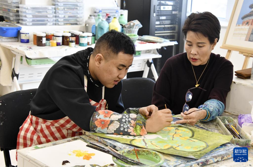 12月2日,北京市残疾人服务示范中心艺术康复项目的学员在学习绘画。