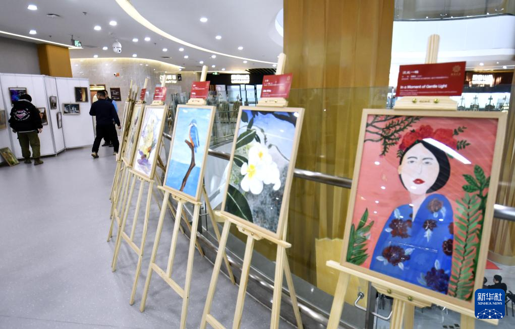 这是12月2日在北京市残疾人服务示范中心拍摄的残疾人美术作品。