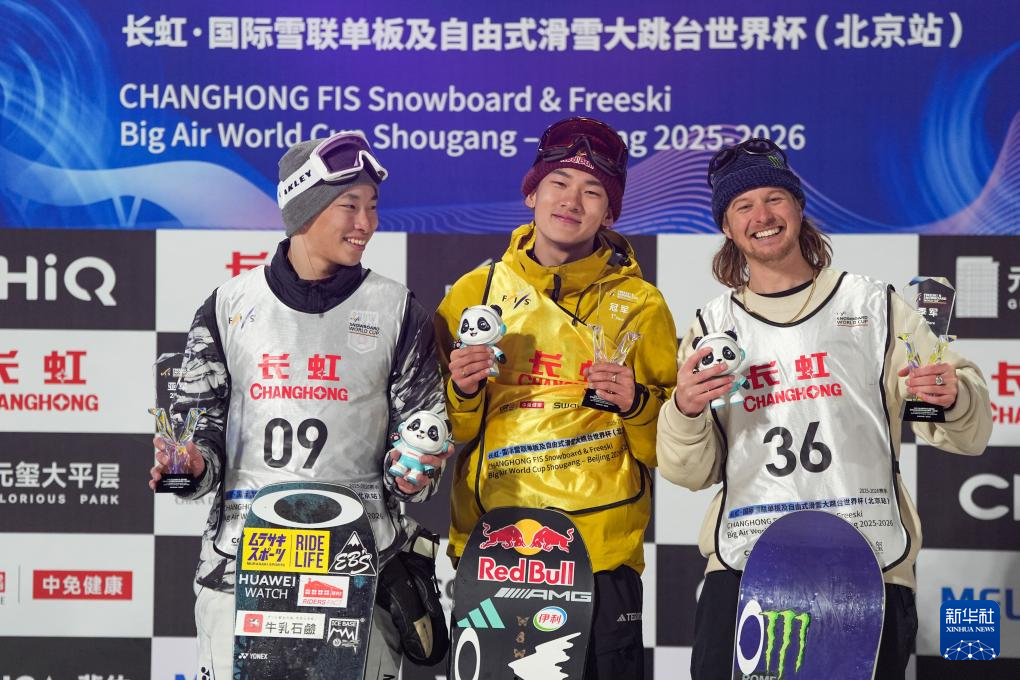 新华社北京12月6日电(记者李春宇、董意行)6日,2025-2026赛季国际雪联单板及自由式滑雪大跳台世界杯北京站在首钢滑雪大跳台“雪飞天”落幕。中国名将苏翊鸣以总分181.00分夺得男子单板滑雪大跳台冠军。