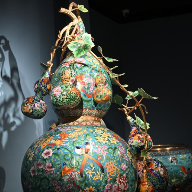 12月15日,观众参观展出的景泰蓝作品《福禄万代》。