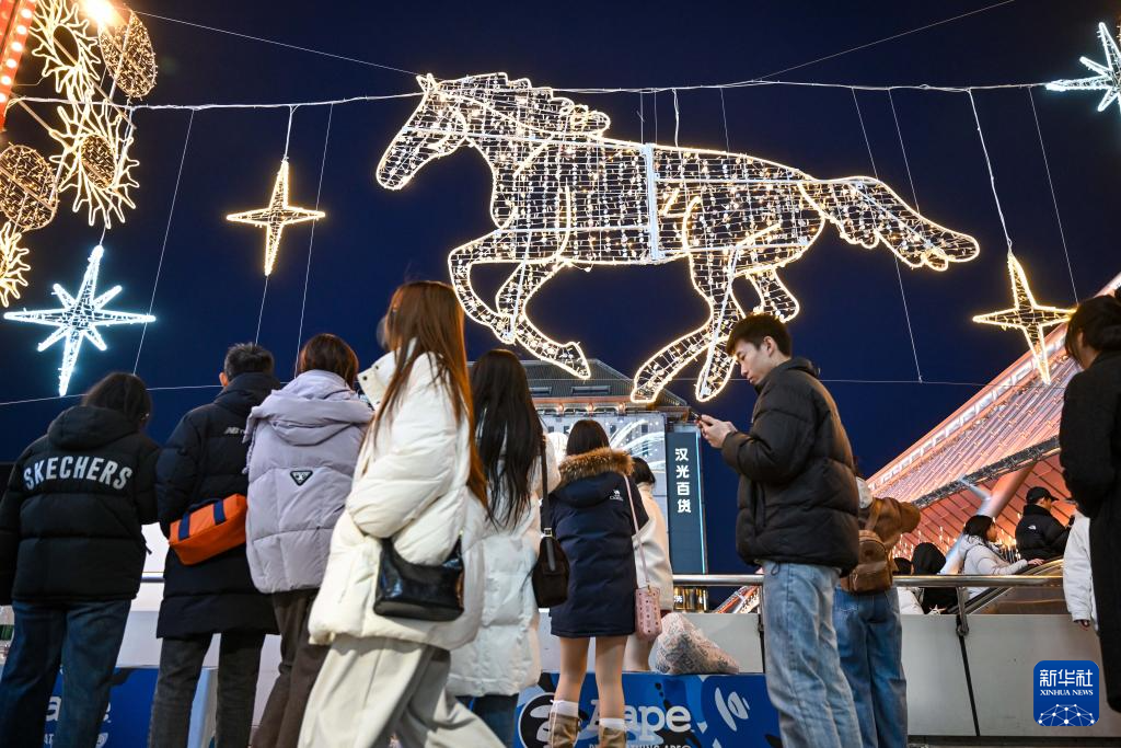 随着农历马年的脚步渐近,北京街头巷尾的节日氛围逐渐升温,吸引众多游客游玩观赏。