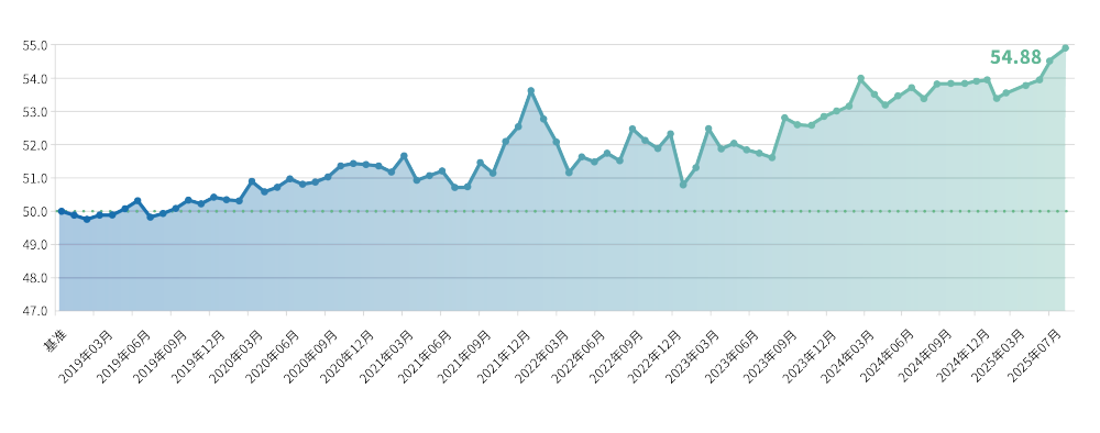 分维度来看,7月融资景气度指数为54.88点,环比上升0.41点。中国人民银行日前发布数据显示,7月末,普惠小微贷款余额35.05万亿元,同比增长11.8%。金融机构支持重点领域和薄弱环节的能力和意愿不断提升,信贷结构持续优化。7月,新发放企业贷款利率约3.2%,同比下降约45个基点,综合融资成本下降,融资环境持续向好。