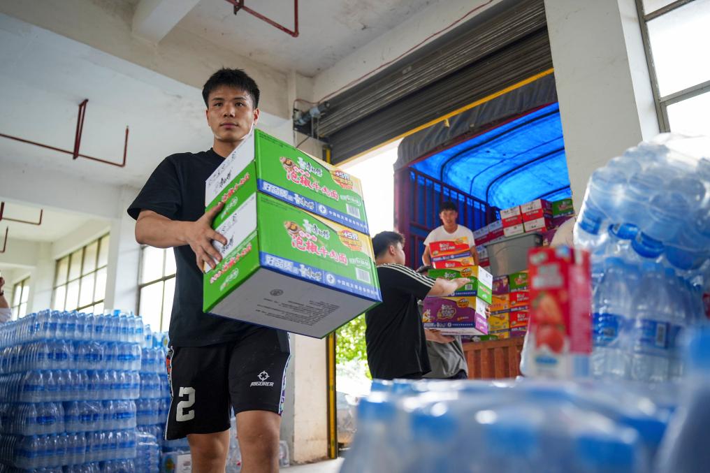 林进标在贵州省榕江县工业园区搬运救援物资(2025年6月26日摄)。新华社发(龙建睿摄)