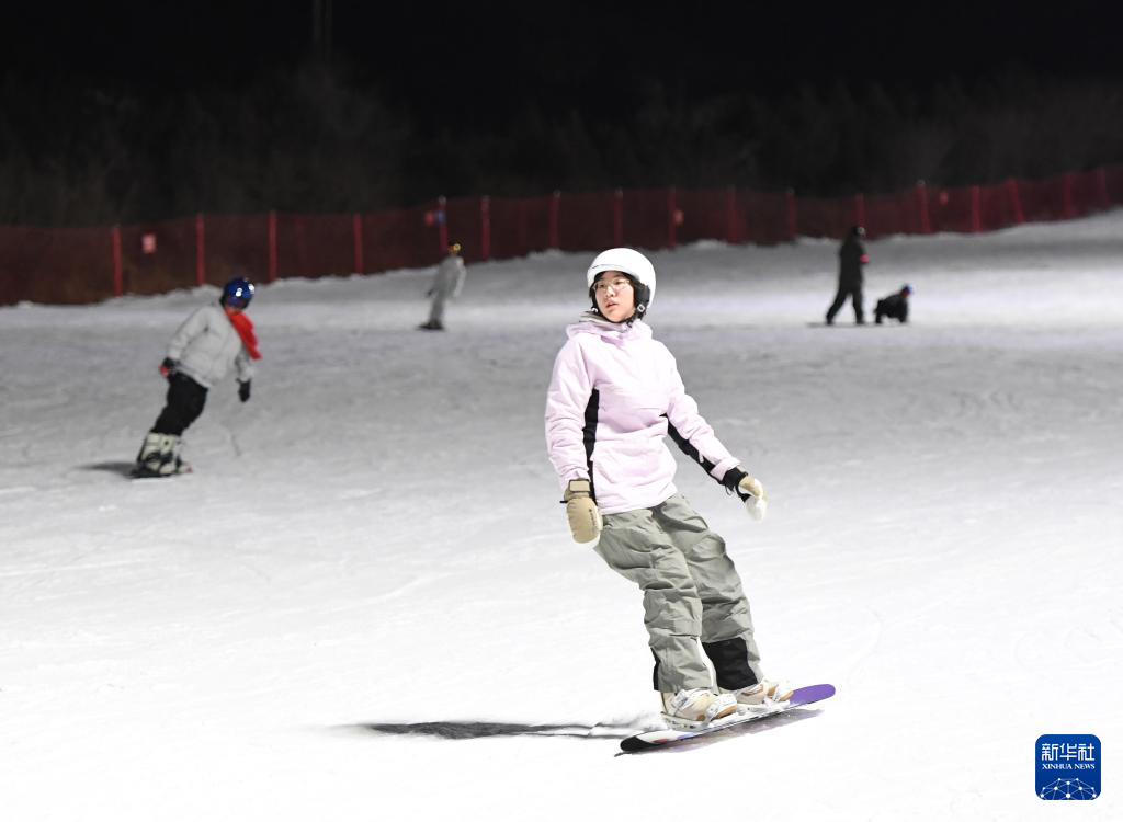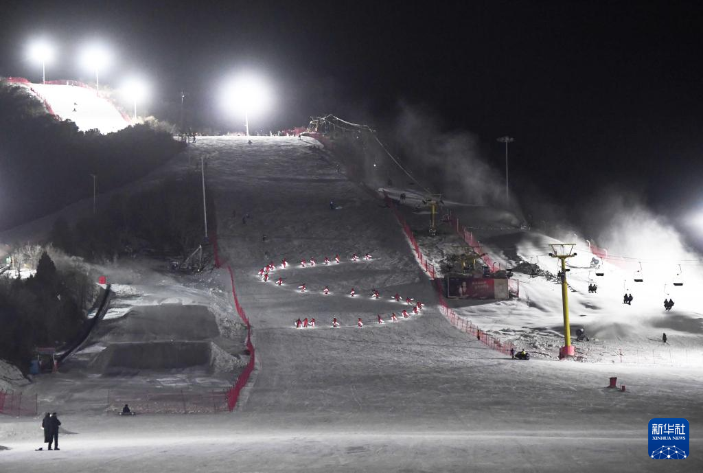 12月31日,市民在北京渔阳国际滑雪场参与活动迎新年。
