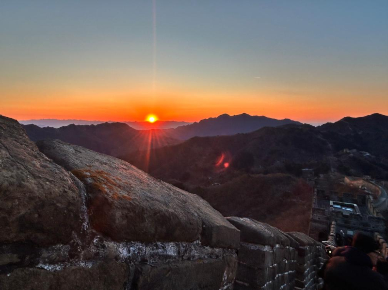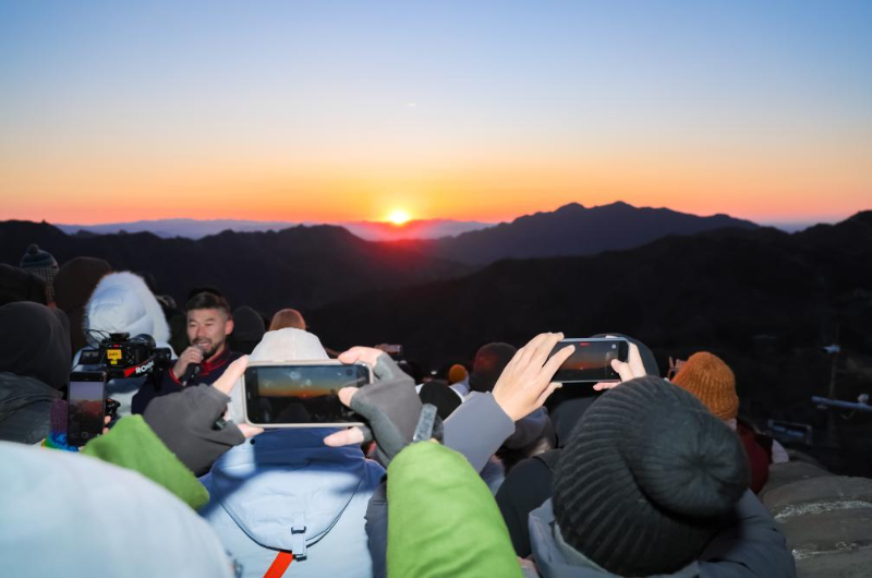 据了解,元旦观日出活动作为慕田峪长城的品牌活动之一,已经举办三十余年,凭借其独特的魅力和丰富的文化内涵,吸引众多游客前来参与,共同见证新年的第一缕阳光照耀在古老长城之上的壮丽景色。