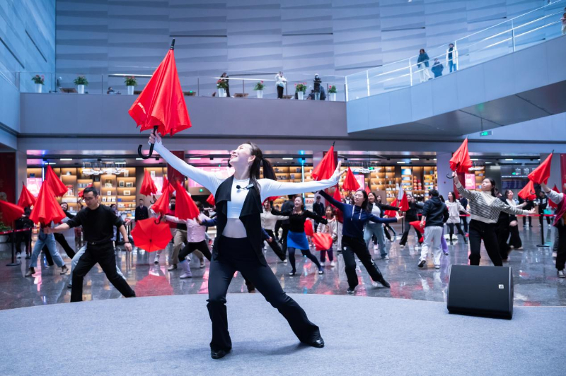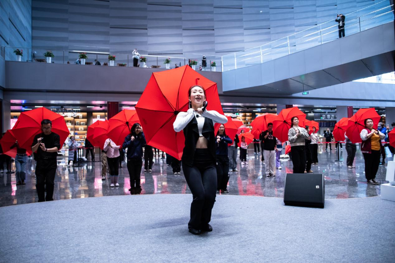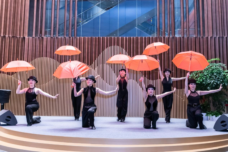 工作坊现场,伴随着熟悉的《雨中曲》旋律,中央音乐学院声乐歌剧系舞蹈副教授刘佳亲自指导。她以剧中核心的伞下踢踏舞段为基础,从简单的开合雨伞、基础步伐开始,循序渐进地带领参与者们跳跃、旋转。尽管多数人并无舞蹈基础,但在专业引导和轻松氛围下,孩童的灵动、长者的投入以及国际友人的热情迅速交织融合。参与者们用伞与脚步演绎“雨水”的意象,欢声笑语弥漫全场,构成了冬日里一道温暖而充满活力的文化风景线。活动不仅让观众解锁了剧中的舞蹈魅力,也展现了经典艺术跨越语言与年龄隔阂的感染力。