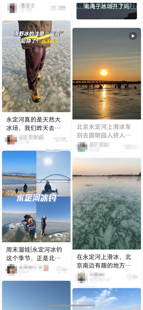 “在网上刷到好多人推荐,说这里人少景好,就带着孩子过来了。”在京郊一处野外河道冰面,市民王先生一家正在冰上嬉戏,而他口中的“推荐”,指的是在社交平台上看到的短视频和图文分享。
