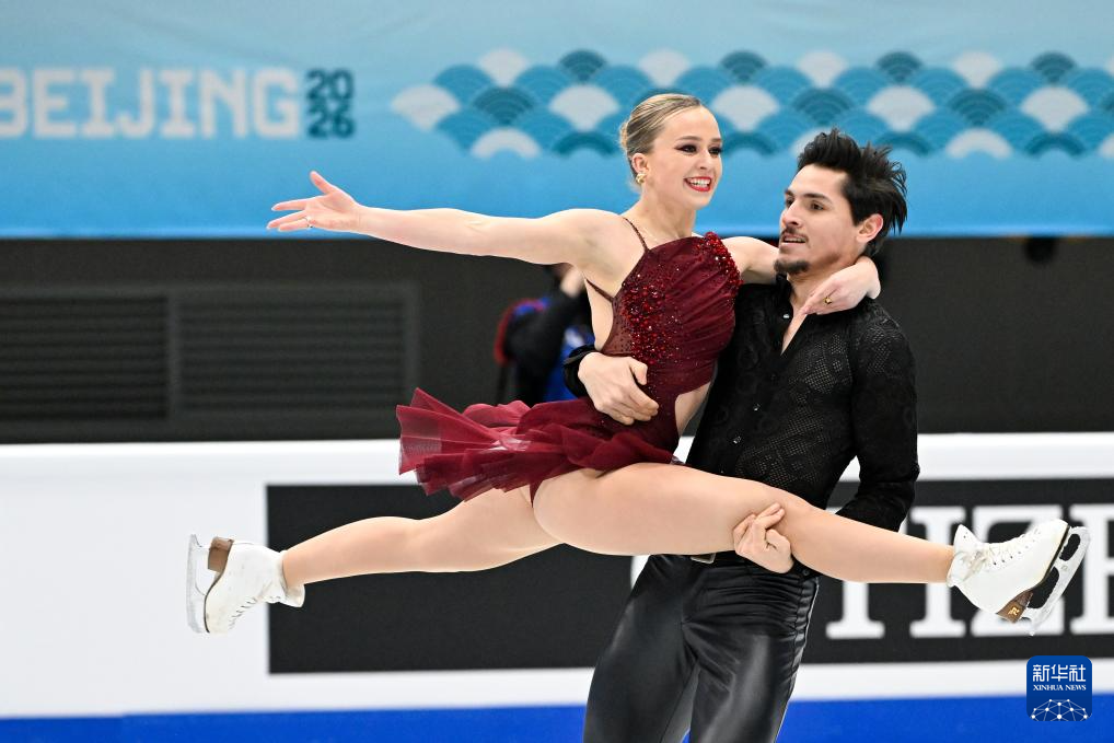 当日,2026年国际滑联四大洲花样滑冰锦标赛冰舞韵律舞比赛在国家体育馆举行。