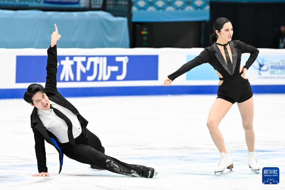 1月22日,日本组合吉田呗菜(左)/森田真沙也在冰舞韵律舞比赛中。